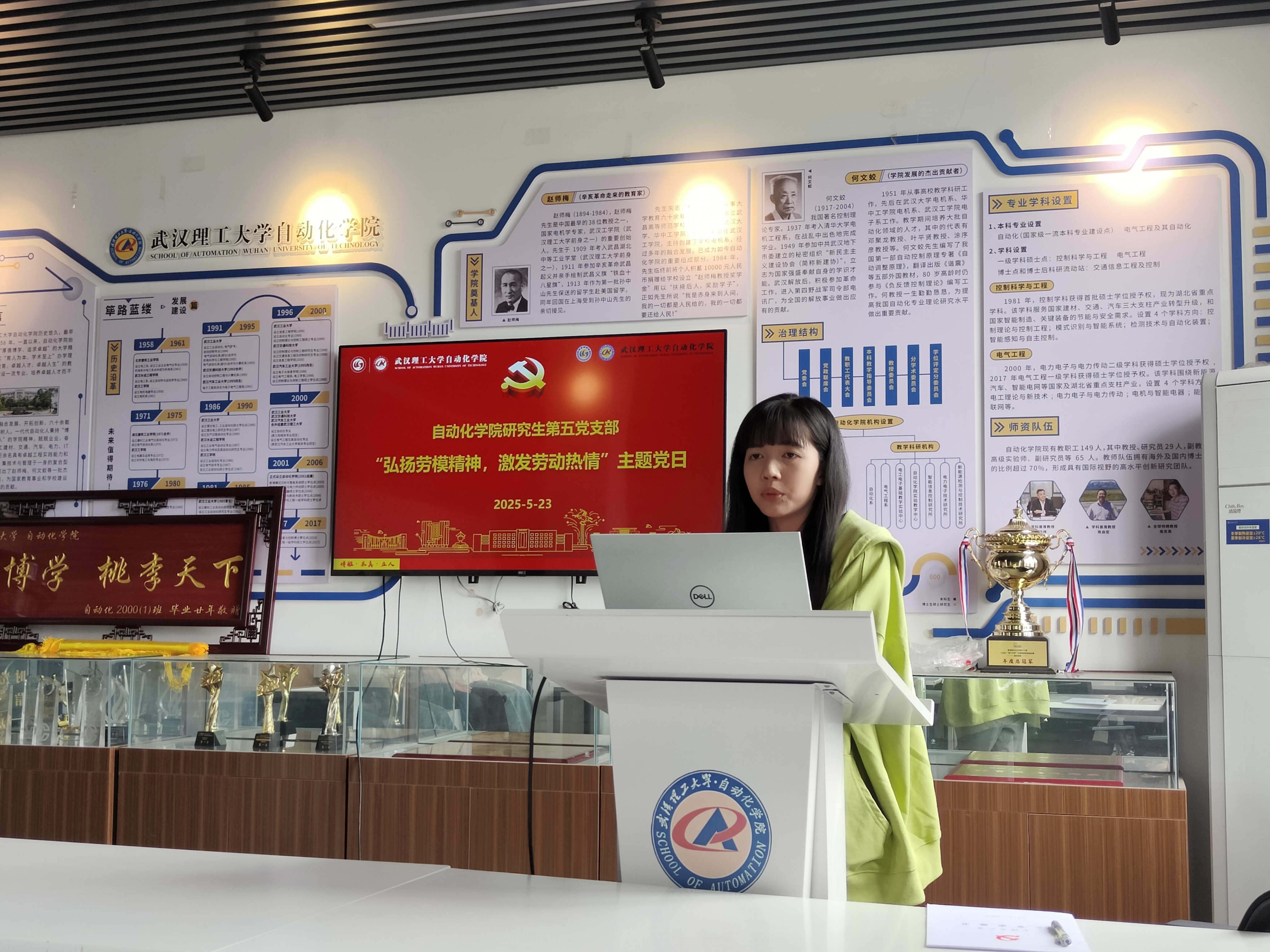 2025年5月23日下午,beat365官方网站研究生第五党支部在综合楼三楼文化展厅召开“弘扬劳模精神,激发劳动热情”主题党日活动,支部党员积极参加。本次活动由支部书记尚宇菲同志主持,聚焦新时代弘扬劳模精神、劳动精神与工匠精神的重要意义。